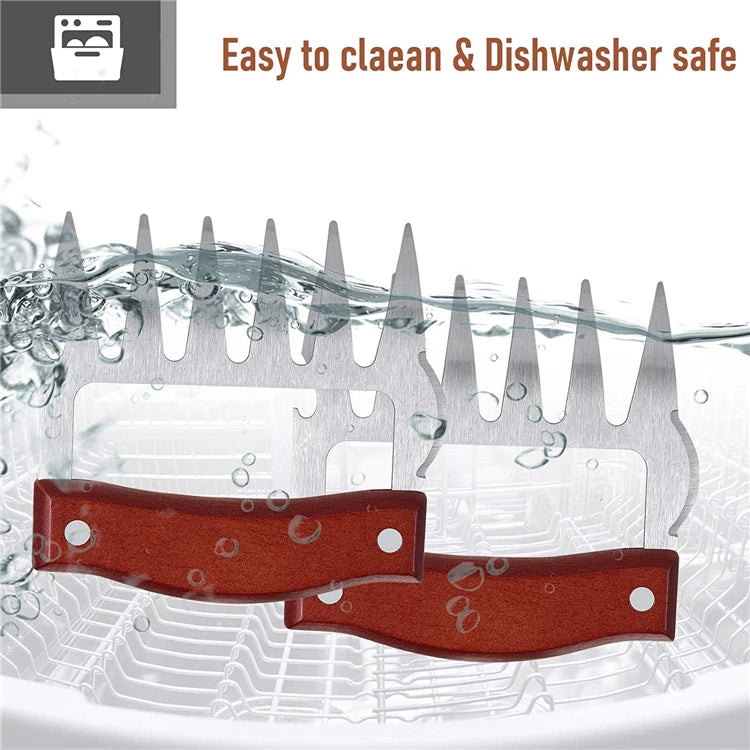 Qualité Professionnelle à la Maison : Fabriquées avec des matériaux de haute qualité, nos griffes à viande allient durabilité et fonctionnalité. L'inox garantit une résistance à la corrosion et une facilité de nettoyage, tandis que le bois apporte une touche d'élégance naturelle à votre arsenal culinaire.